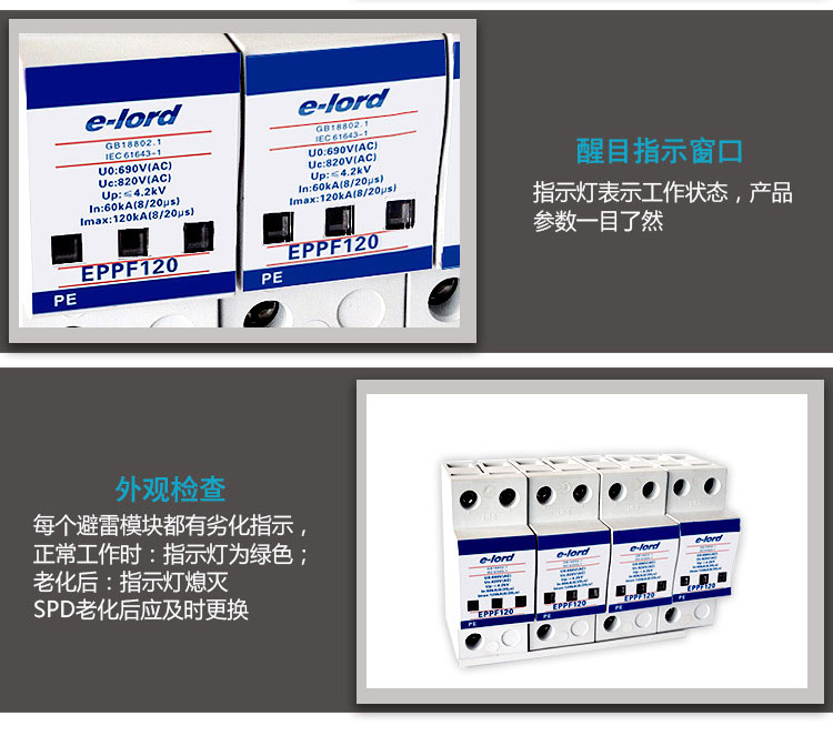 EPPF系列風(fēng)能電源SPD是由多個單片式限壓單元組成,廣泛應(yīng)用于風(fēng)能690V交流發(fā)電系統(tǒng)中,對風(fēng)能發(fā)電機(jī),匯流箱、配電柜及送變器等系統(tǒng)配套設(shè)備進(jìn)行雷電感應(yīng)浪涌防護(hù),能有效防止由雷電感應(yīng)波和線路浪涌沖擊所造成的設(shè)備損壞,最大程度的保證了風(fēng)能發(fā)電系統(tǒng)的穩(wěn)定性和可靠性,保護(hù)風(fēng)能發(fā)電系統(tǒng)穩(wěn)定可靠地運行。
